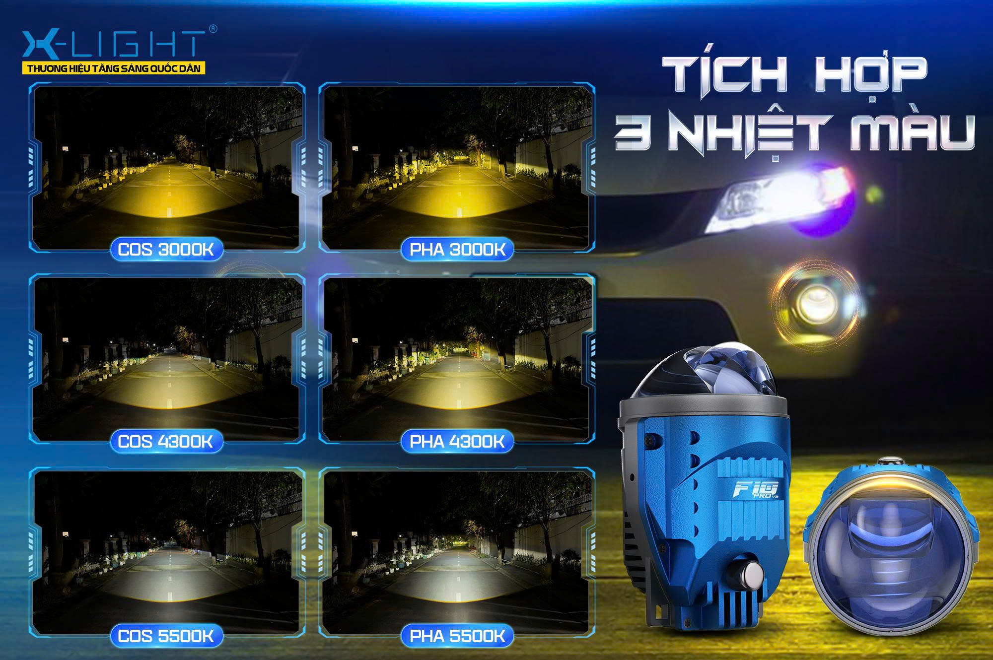 Đèn bi gầm X-Light F10 Pro V2 là dòng đèn thuộc phân khúc chuyển đổi nhiệt màu linh hoạt, cho phép người dùng có thể chuyển đổi nhanh giữa ba sắc độ ánh sáng để phù hợp với điều kiện di chuyển thực tế. Đây là ưu điểm tạo nên sự tiện lợi lớn cho những chuyến đi dài ngày, khi môi trường, điều kiện mặt đường, thời tiết thay đổi liên tục.