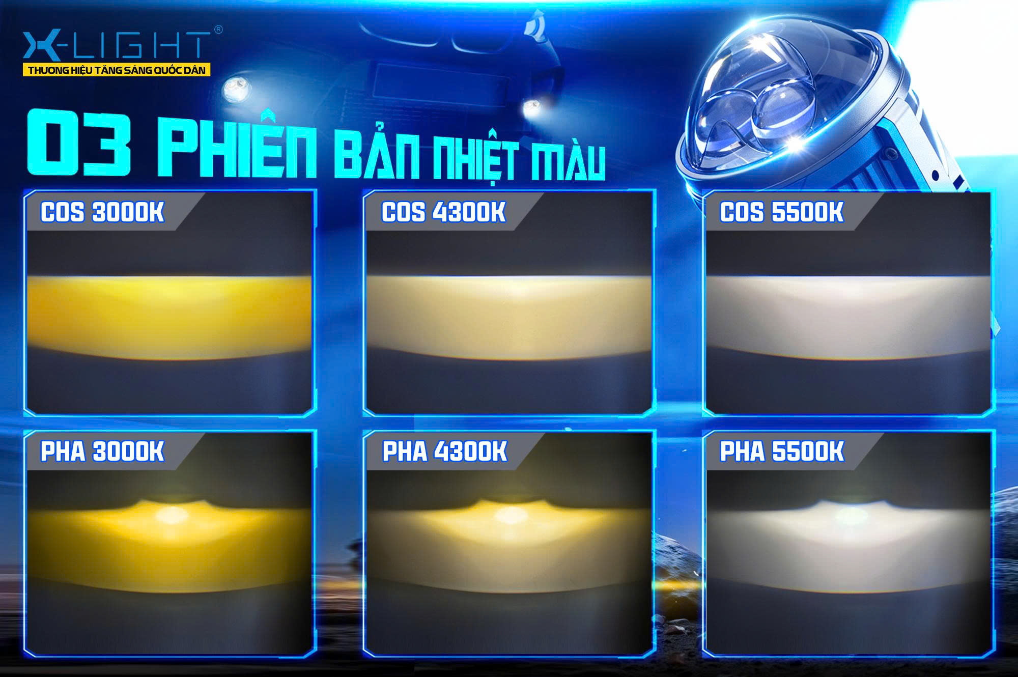 Một điểm đáng chú ý khác là đèn bi gầm X-Light F10 Turbo cung cấp các phiên bản nhiệt màu gồm 3000K, 4300K và 5500K, sử dụng những màu ánh sáng đa dụng và phù hợp nhất cho các loại hình giao thông tại Việt Nam. Việc có đa dạng các phiên bản nhiệt màu giúp các chủ xe có thể dễ dàng lựa chọn sản phẩm phù hợp với nhu cầu di chuyển hàng ngày.