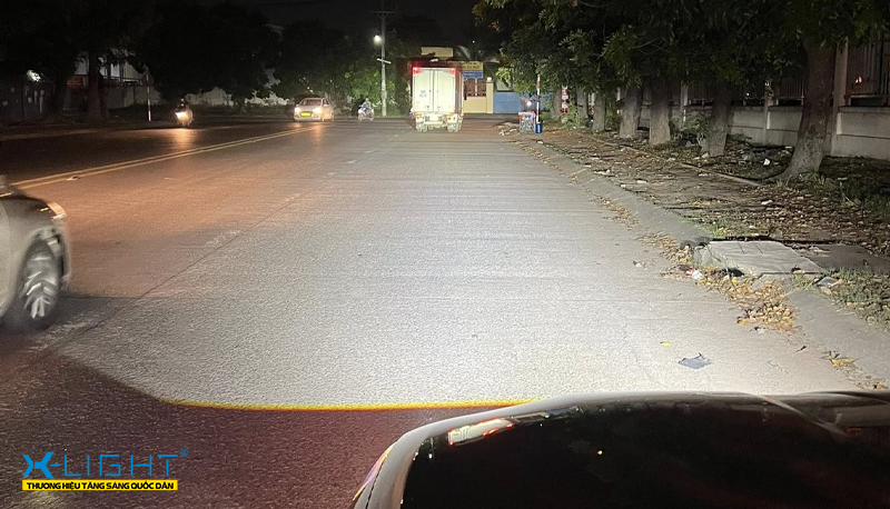Trong khi đó, chế độ Cos cũng gây được ấn tượng với vùng sáng đồng đều từ trung tâm cho đến rìa sáng. Ánh sáng cos của Quantum X giúp tái hiện sự vật trên đường một cách chân thực, dễ dàng nhận diện vạch kẻ đường, vật cản ở một khoảng cách gần. Đây là một lợi thế khi di chuyển trong nội đô, xử lý những tuyến đường đông đúc.