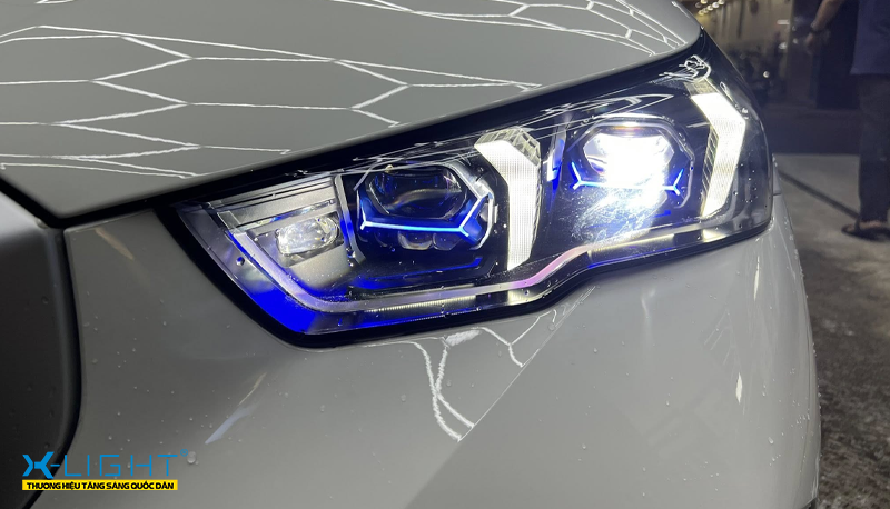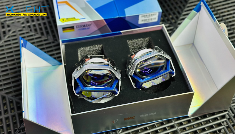 Một trong những lý do khiến nhiều chủ xe lựa chọn BMW 530i nâng cấp đèn với bi LED Quantum X chính là thiết kế ngoại hình ấn tượng của sản phẩm. Ngay từ cái nhìn đầu tiên, Quantum X đã tạo được sức hút mạnh mẽ nhờ đường viền xanh nổi bật, cụm ba mắt trợ pha độc đáo và thấu kính lục giác tinh tế. Tất cả được sắp xếp hài hòa, mang lại một tổng thể đậm chất thể thao, mạnh mẽ và hiện đại, rất phù hợp với ngôn ngữ thiết kế đặc trưng của BMW.