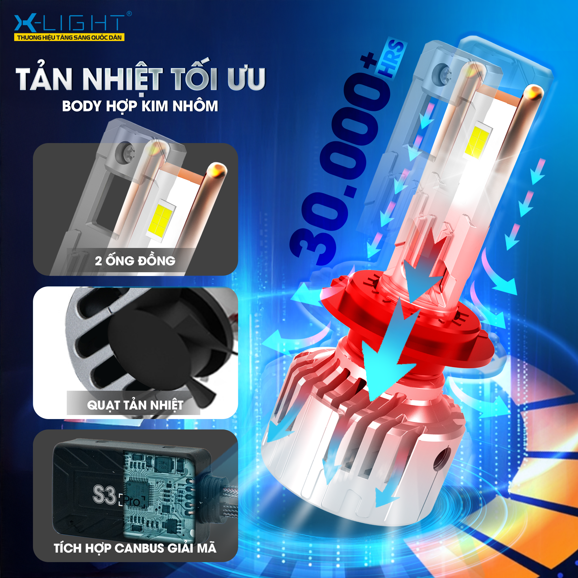 Bóng LED X-Light S3 Pro V2 là dòng đèn chiếu sáng ô tô được khá nhiều chủ xe quan tâm khi muốn cải thiện khả năng quan sát ban đêm mà không cần can thiệp sâu vào hệ thống điện hay kết cấu đèn zin của xe. Sản phẩm có thiết kế nhỏ gọn nhưng cho ánh sáng tốt và bền vững, giúp mang lại trải nghiệm sử dụng tốt hơn so với các bóng halogen nguyên bản.