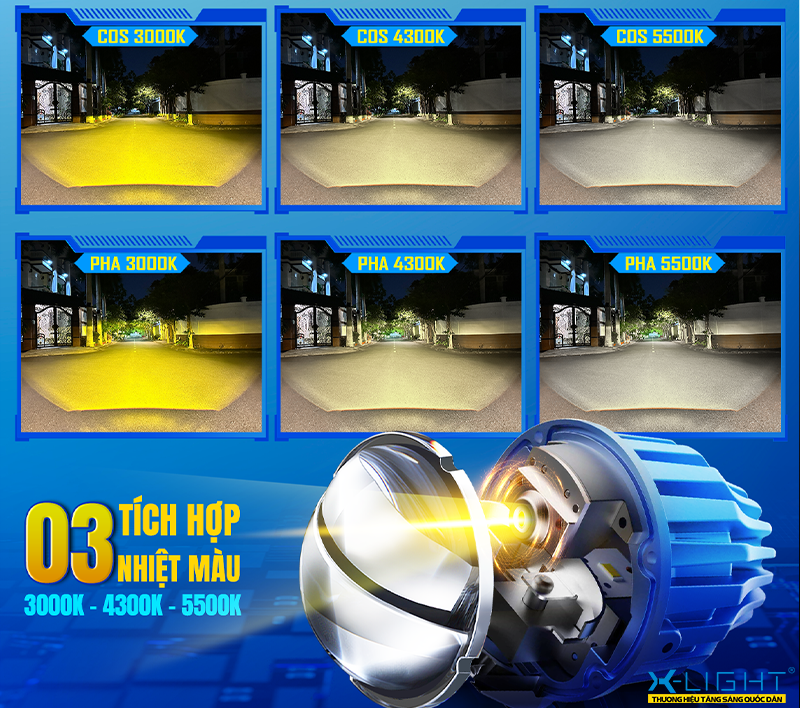 Không chỉ nổi bật ở hiệu năng chiếu sáng, đèn bi gầm X-Light F10 2.0 còn được trang bị công nghệ 3 nhiệt màu, cho phép người dùng dễ dàng điều chỉnh ánh sáng phù hợp với từng điều kiện di chuyển thực tế. Đây là điểm đặc biệt hữu ích với những người thường xuyên đi qua nhiều môi trường khác nhau như trời mưa, sương mù hoặc đường khô ráo.