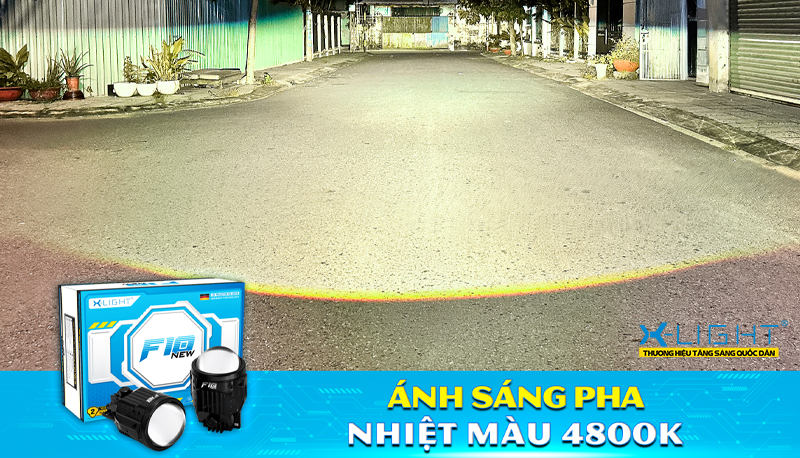 Ánh sáng của đèn bi gầm X-Light F10 New 2025 được tích hợp với một nhiệt màu duy nhất là 4800K. Đây là nhiệt màu trung hòa, mang đến dải ánh sáng không quá trắng cũng không quá vàng, giúp người lái dễ dàng quan sát trong nhiều điều kiện thời tiết khác nhau. Đây là mức nhiệt màu được đánh giá là phù hợp với điều kiện giao thông tại Việt Nam, đặc biệt là đáp ứng được tầm nhìn khi di chuyển trong mưa hoặc sương mù nhẹ.