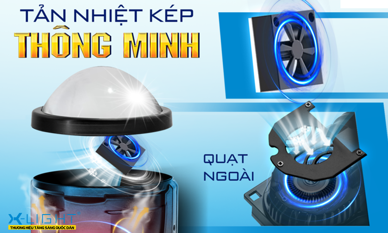 Đèn bi gầm X-Light F10 New 2025 có trang bị tản nhiệt chủ động kết hợp quạt bên trong