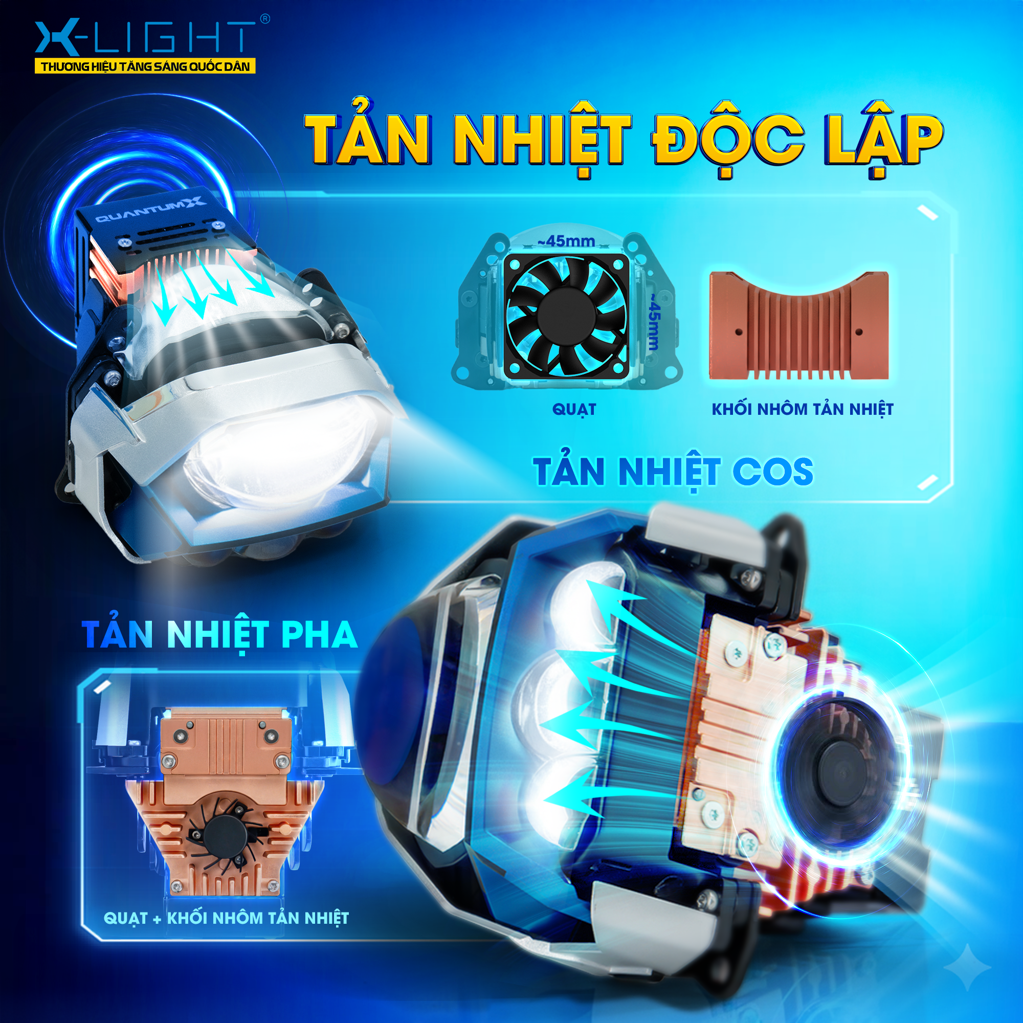 Với thiết kế thân đèn chắc chắn cùng cơ chế tản nhiệt thông minh, X-Light Quantum X V2 không chỉ mạnh mẽ về ánh sáng mà còn bền bỉ, xứng đáng là lựa chọn lâu dài cho những ai yêu cầu sự an toàn, ổn định và đẳng cấp cho chiếc xe của mình.