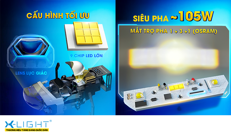 Kết hợp với cấu hình Cos rộng và siêu Pha mạnh mẽ, đèn bi LED X-Light Quantum X đáp ứng trọn vẹn nhu cầu nâng cấp đèn của người dùng, mang đến trải nghiệm lái xe tự tin và an toàn hơn trong mọi bối cảnh.