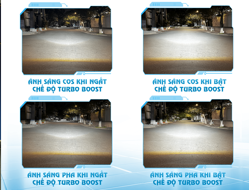 Khi đi trên các tuyến đường vắng, thiếu đèn hoặc cần tầm nhìn xa, chế độ tăng cường công suất sẽ giúp mở rộng vùng chiếu và nâng cao độ sáng tổng thể. Ngược lại, khi di chuyển trong khu vực nội đô đông xe và nhiều nguồn sáng, ánh sáng có thể được hạ xuống mức phù hợp, hạn chế gây chói cho phương tiện đối diện và tạo cảm giác dễ chịu cho người lái.