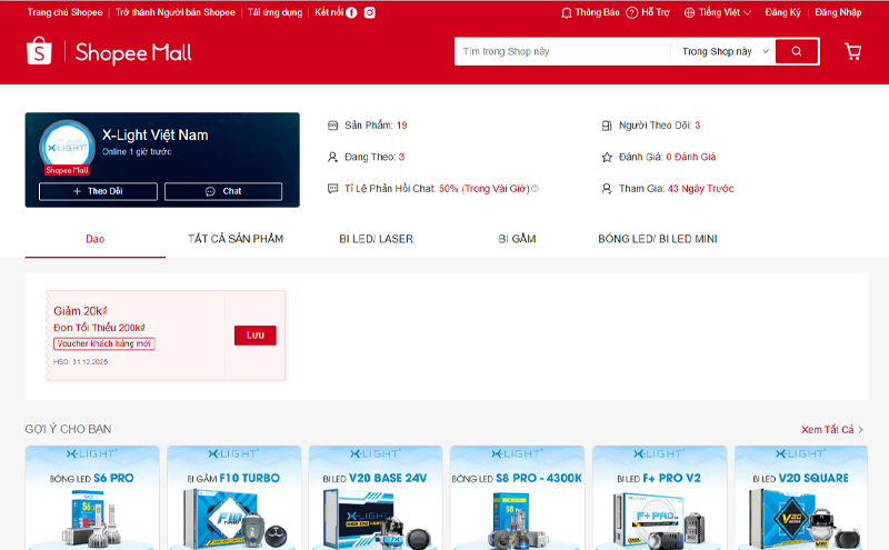 - Đi đến trang Shopee Mall X-Light Việt Nam.