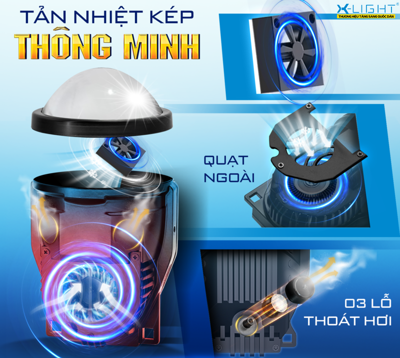 Quá trình làm mát đèn luôn được duy trì ngay cả khi xe di chuyển tốc độ thấp do giao thông đông đúc, dừng đèn đỏ hoặc vận hành trong môi trường có thời tiết nóng.