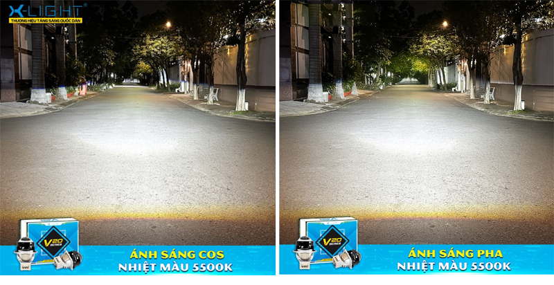 Đèn bi LED X-Light V20 New 2025 tạo nên ánh sáng có cường độ mạnh mẽ, dải sáng rộng và đồng đều giúp tầm quan sát khi đi vào ban đêm được mở rộng về cả chiều sâu lẫn chiều ngang, đặc biệt khi đi đường cao tốc hoặc khu vực thiếu sáng. Thiết kế thấu kính cải tiến, mang lại đường cắt cos sắc nét, hạn chế tình trạng gây chói cho xe đối diện, giúp người lái an tâm hơn khi di chuyển ở những khu vực đông đúc.
