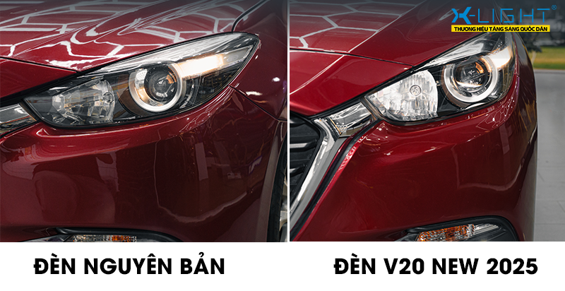 Ngoại hình tương đồng giữa bi LED V20 New 2025 và đèn zin của Mazda 3