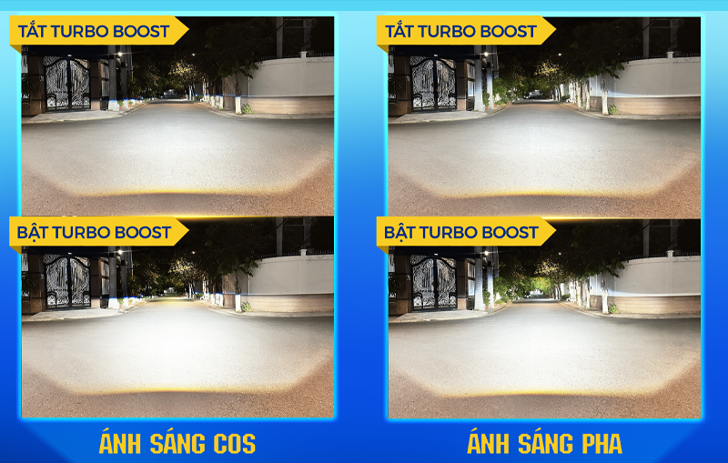 Khi di chuyển ở trong các khu vực nội thành, chủ xe có thể ngắt chế độ Turbo Boost để đưa ánh sáng về công suất thấp hơn, giảm độ chói. Ngược lại, khi đi đường trường hoặc khu vực ngoại thành thiếu ánh sáng, kích hoạt Turbo Boost sẽ giúp ánh sáng mạnh hơn, chiếu xa hơn, tạo tầm nhìn rõ hơn và tăng sự tự tin khi cầm lái.