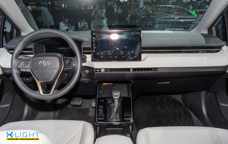 Không chỉ thay đổi ở ngoại thất, khoang lái cũng được chăm chút kỹ hơn nhằm mang đến trải nghiệm hiện đại và gọn gàng. Bảng táp lô thiết kế lại theo hướng tối giản, sử dụng dải cửa gió điều hòa kéo dài suốt chiều ngang để mở rộng không gian trực quan. Khu vực trung tâm được hoàn thiện mới với hai vị trí đặt điện thoại cùng sạc không dây, đồng thời loại bỏ nhiều nút bấm vật lý để chuyển sang giao diện cảm ứng. Màn hình giải trí kích thước 12,9 inch đặt nổi, chạy chip Qualcomm Snapdragon 8155, trở thành điểm nhấn nổi bật trên bảng điều khiển. Phía sau vô lăng vẫn là màn hình kỹ thuật số 8,8 inch quen thuộc của Corolla nhưng được tinh chỉnh giao diện trực quan hơn.